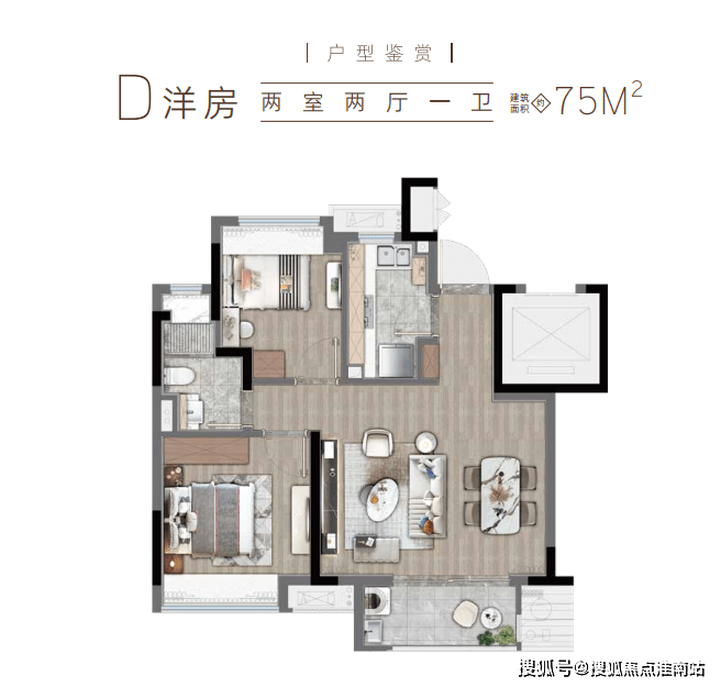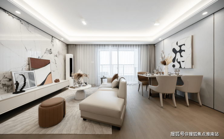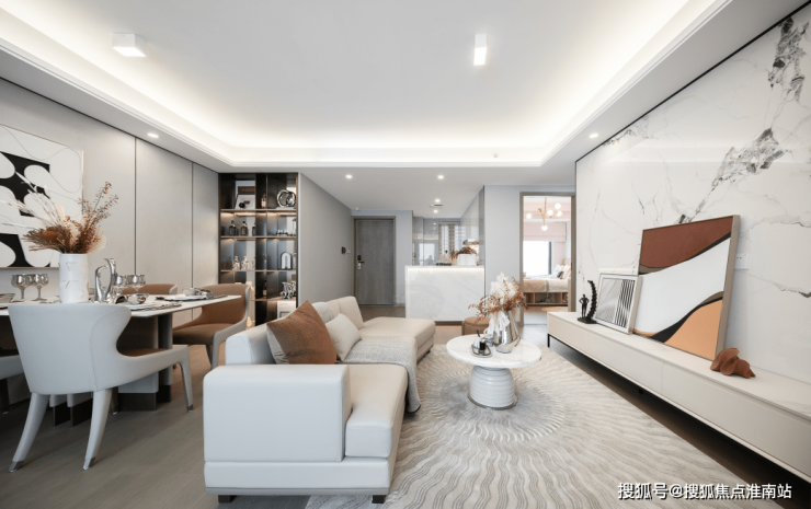 格局很精致,得房率约78%,做到了这面积段少有的客餐厅横厅布局,据悉客厅面宽约5.2米。