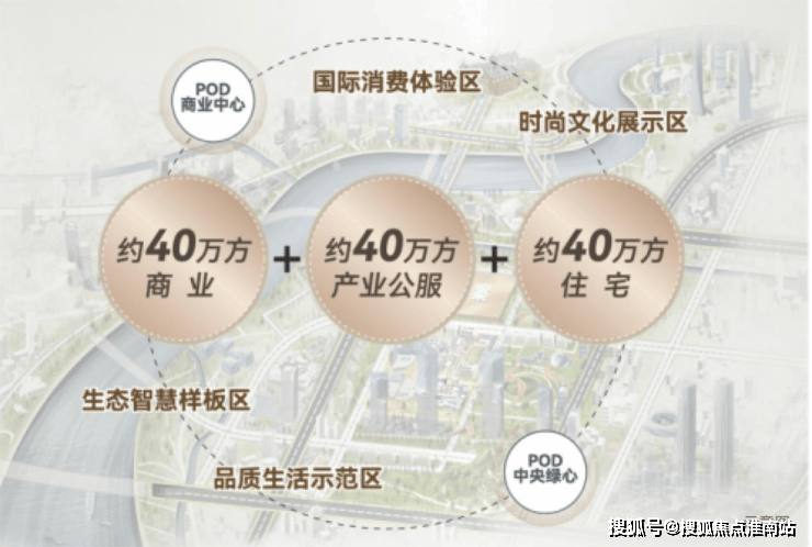 POD商业中心:围绕漫步式商业街区打造的约40万方的“POD商业中心”,商业中心包含露天剧场、大型室外秀场、水上运动等。