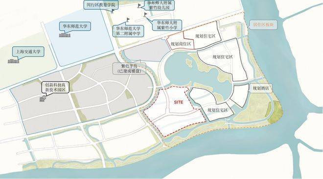 项目西侧是紫竹高新技术园区、北面是交大和华师大校园,以及紫竹基础教育园区,包含幼儿园至高中全龄段教育配套。
