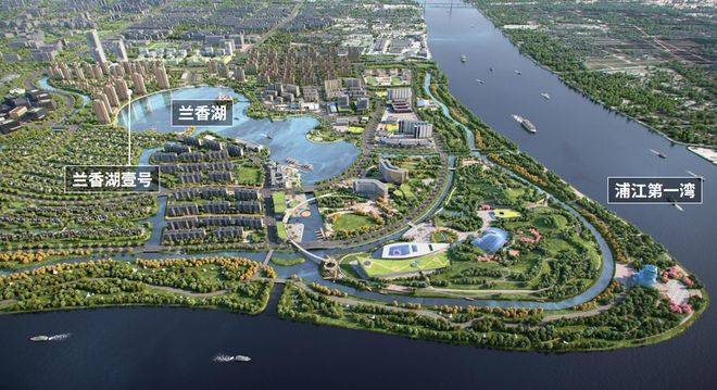 黄浦江从东、南两面环抱整个兰香湖社区,东北侧有兰香湖作为水系中心,钥匙形的外观寓意“以智慧之钥,开启生活之门”。