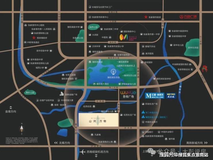 爱情•山河万物,位于张家港城南核芯处,紫荆路与新泾路交汇处,临近暨阳湖幼儿园。