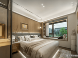 这一侧的墙面,被整个大浴缸所填满,视觉上就很舒适,一旁的搁架从另一头一直延伸这一头,同时也延伸了收纳功能。抬头就可以看到卫浴间的圆形小窗,极为雅致。