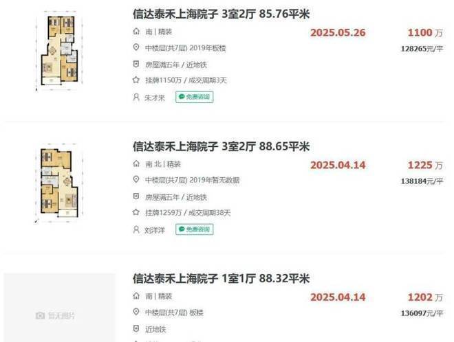 板块二手房方面,建发项目隔壁的上海院子,洋房最新成交价在12-14万之间。
