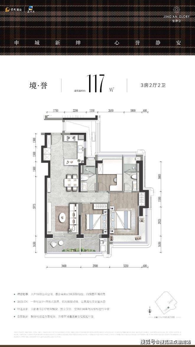 其中建面约112-119㎡高拓三房配备美诺四件套厨电、门面奢石定制等品质精工,