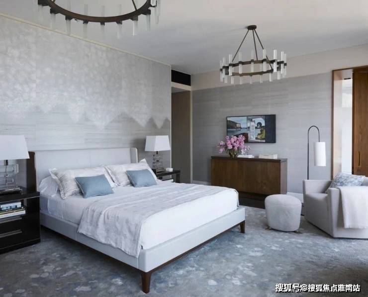 卧室内的摆设以现代设计为主,但地面上天鹅绒的地毯、柔软的床单和复古的吊灯,无一不展现出维多利亚时期的风情.