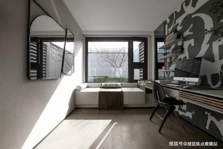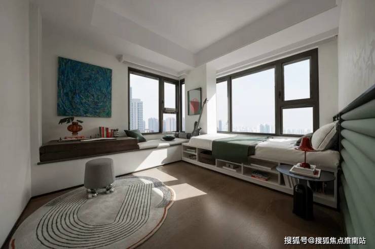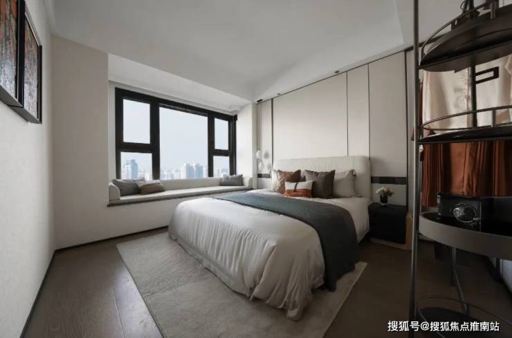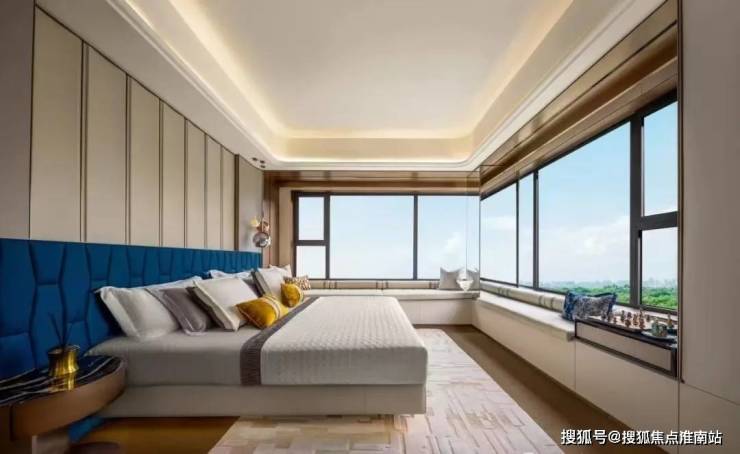 朗云在主卧采用270°环幕景观飘窗,打开观景的极致视野。尺度真是大到惊人的程度。