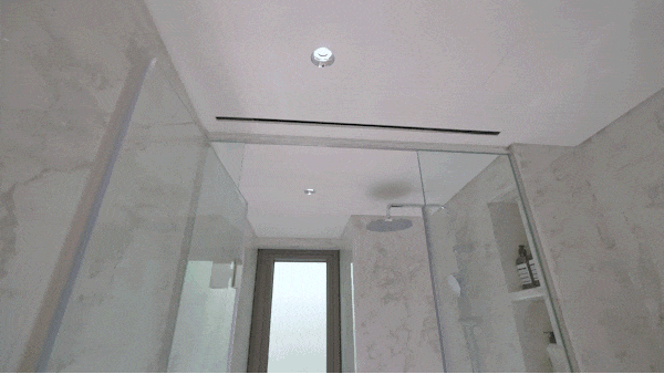 线性浴霸的环抱式送风,以无风感制热终结传统浴霸的烘烤式取暖,也是让空间自带高级滤镜的秘密之一。