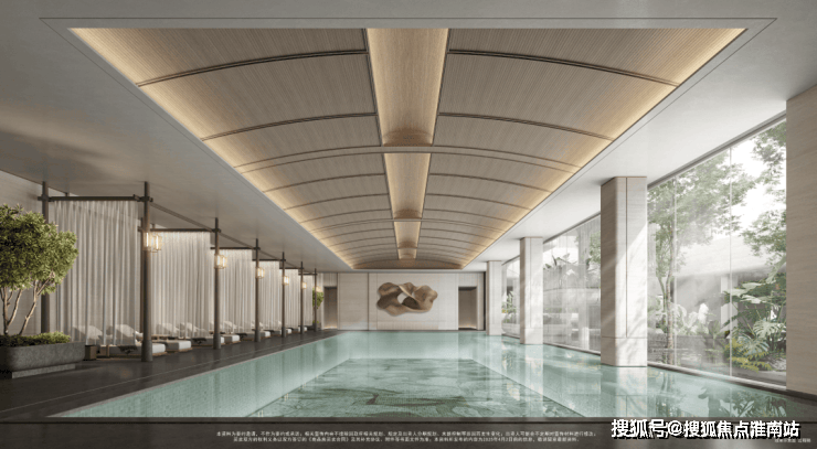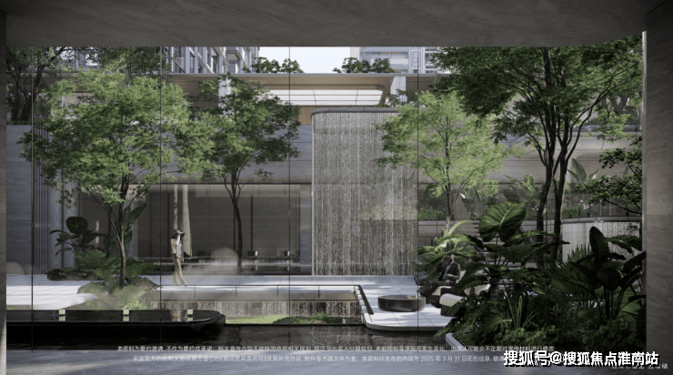 上海宝山招商序售楼处电话☎:400-9659-259(预约看房热线)下沉式庭院,通过垂直景墙、悬浮观景台与叠水景观的立体交织,实现移步换景的视觉效果,也与会所空间形成无界交互。
