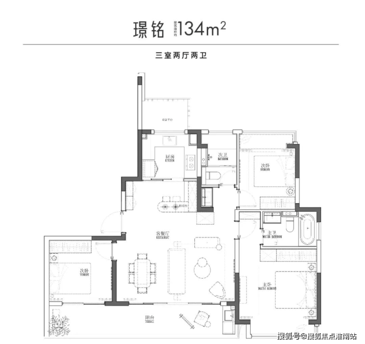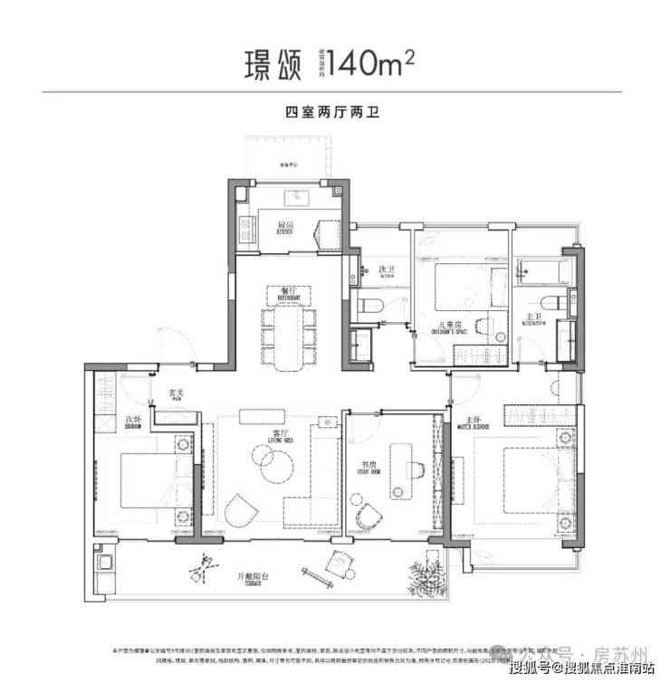 户型面积:建筑面积约134㎡三房、134㎡四房、140㎡四房、143㎡四房、