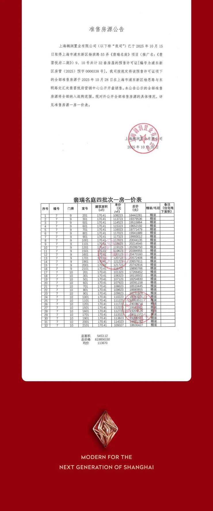 最新消息!2025年上海超级红盘!内中环·新杨思都芯·低密墅区;翡云悦府悦一期七批次少量约175-220m²精装叠墅;均价13.42万/m²!总价约2260万起!上海首个定制精装城市别墅火热续销中!用现象级对话陆家嘴、张江、前滩新贵挑剔眼光!售楼处线上火热预约中!