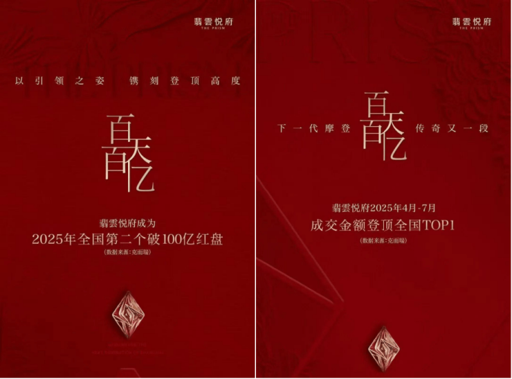 翡雲悦府I期「五开五捷」,II期高层「二开即罄」,只用了5个月不到的时间,业绩再创126亿新高!成为2025年全国第二个销量突破100亿的项目。