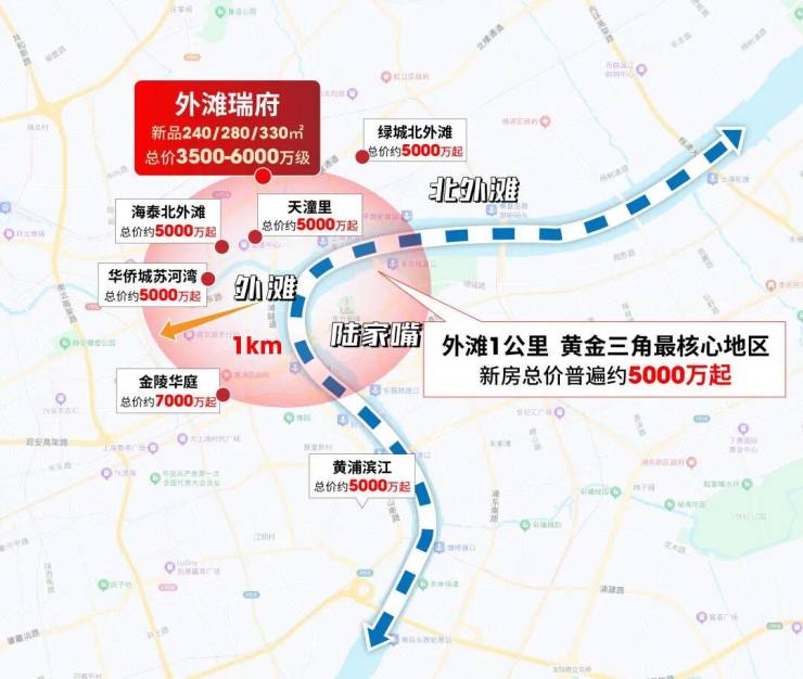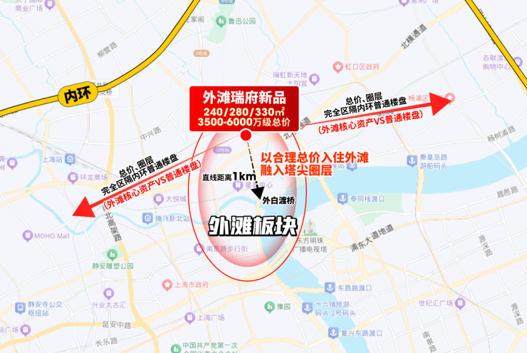 而外滩瑞府核心竞争力,在于其对“外滩核心圈”的精准占位(直线外滩约1公里)