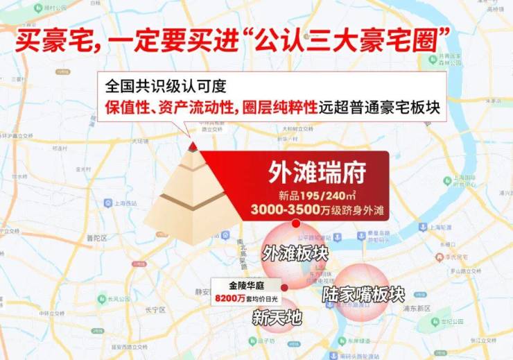 上海三大豪宅圈——外滩、新天地、陆家嘴已成型。而 外滩是其中更具全国号召力的“价值标杆”!此前,金陵华庭以套均约8200万实现“日光”,这份热度的背后是来自全国高净值人群的集体认可: