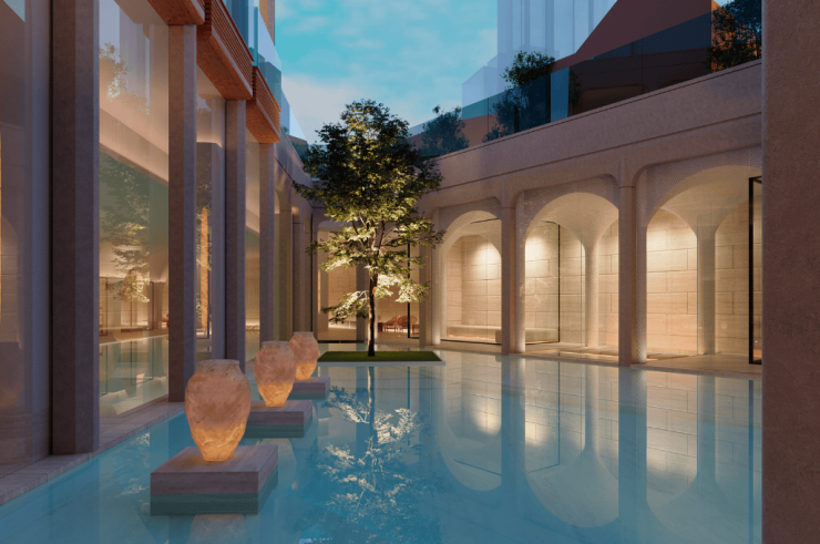 其中,汤臣一品御用设计师渡边智昭操刀的泛会所尤为亮眼! 他突破传统局限,不仅打造了独立“室内外双幕水剧场”!