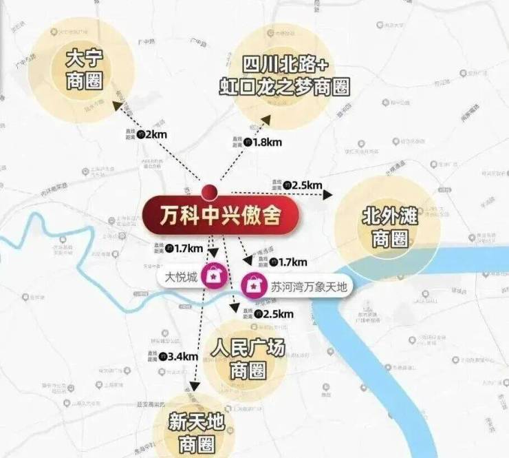 商业配套方面:项目一公里范围内就有虹口龙之梦及大悦城两大购物中心,且尤其是在大悦城二期开业的情况下,整体生活氛围充分提升,市中心的便捷生活触手可及。