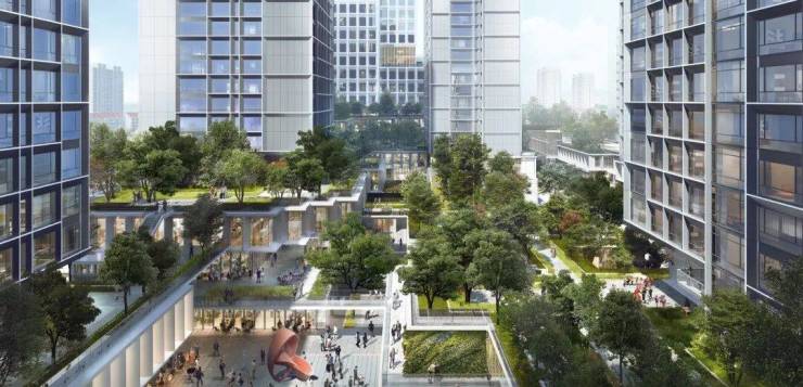 其中森感公园里约40%都是超过十米的大树,绿意盎然。这也与住宅绿化体系、中兴公园的城市山林景融为一体,营造出丰富的垂直绿意体验。