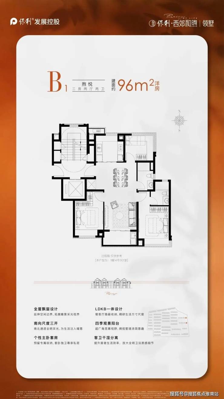 另外,项目无连廊设计,很大程度上提高了得房率,再加上是10F平层产品,得房率就更高了。项目采用非封闭阳台设计,也在一定程度上降低了客户的购房成本。不得不说,这个建面约96㎡3房2厅2卫户型,能满足业主从二人世界到三口之家,再到二胎家庭的全生命周期需求。