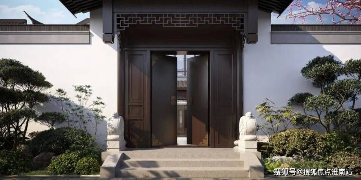 门前一对 抱鼓石,推开铜环双开门就是家。 滴水檐瓦,全依古法,还原每一个繁复的构件。