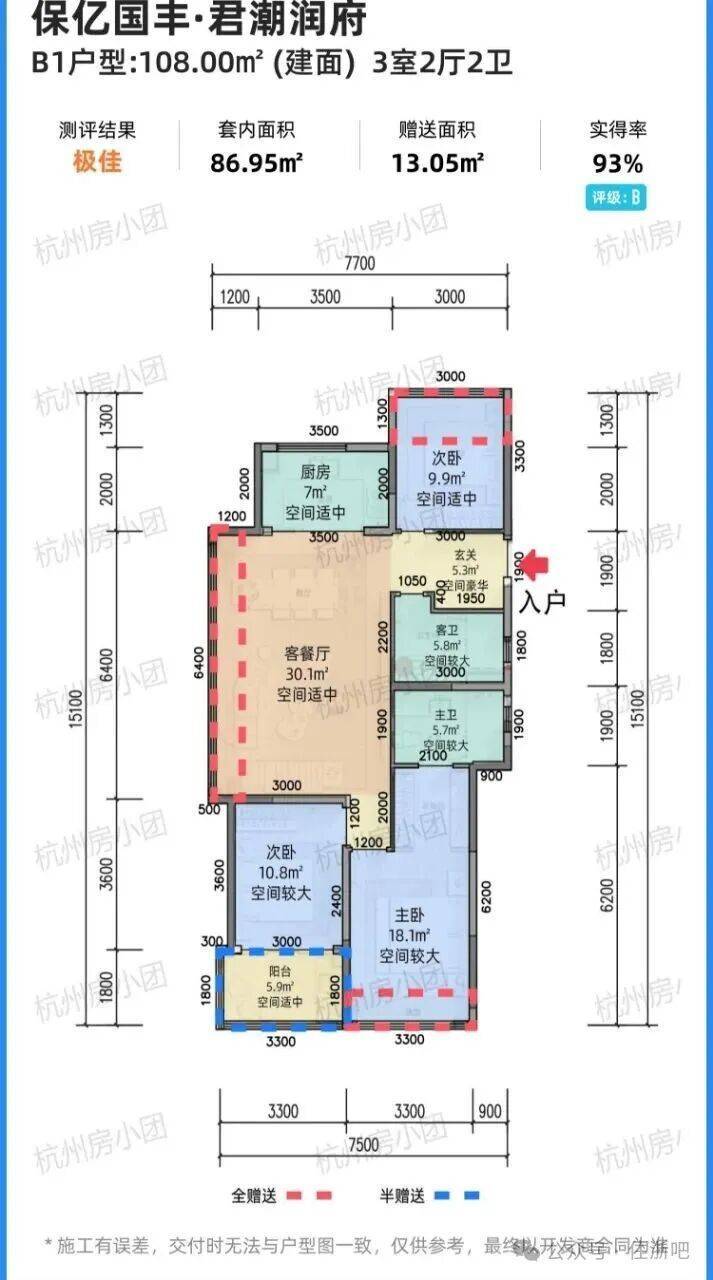 丨高层近100%使用空间:作为板块内少有的限价解除后的新一代高层作品,项目高层户型以优越的空间格局,实现了近100%实际使用空间,约3-3.1米层高超越同侪。