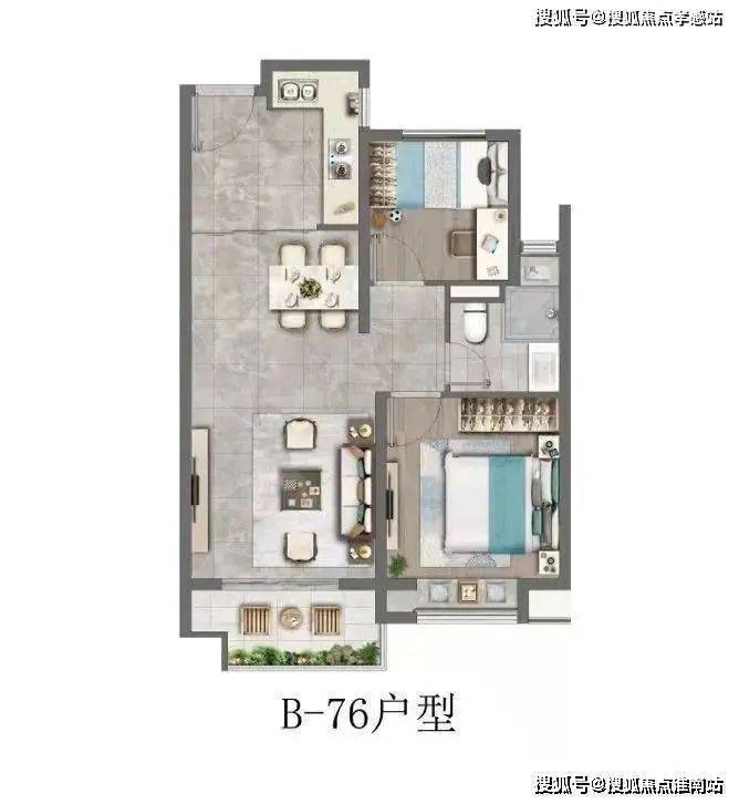 优势:5.1米横厅配超大面宽阳台,采光面大,享受阳光倾洒入室,功能性强;