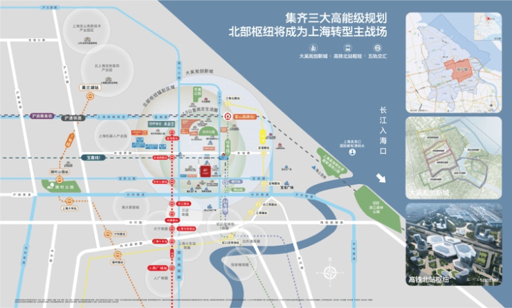 随着北上海在交通、配套设施、学校以及居住环境等方面的规划逐步实现,项目周边已是成熟的居住区,居住氛围非常浓郁,拥有招商花园城商业、白沙公园、杨行体育中心、复旦附属中山医院等丰富城市配套。另外,项目周边学校非常丰富,西侧是华东师范大学第二附属中学(宝山校区),北侧是华东师范大学附属宝山宝杨实验学校等。
