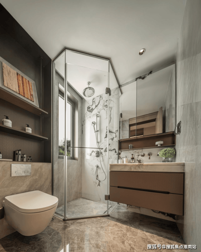 杜拉维特的台盆、壁挂智能马桶,高仪的龙头、淋浴花洒在江湾金茂府卫生间聚首,同级别新盘极少有这样的配置;