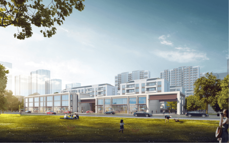 其次,项目南侧临近永泰路的地方,打造了2栋社区配套建筑,将用作社区食堂、恒温泳池、健身房等,服务于社区的同时有效阻隔道路噪音。