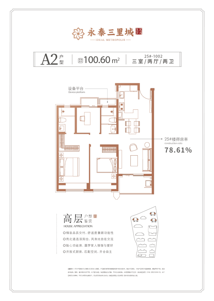 永泰三里城二期主推320套房源,建面约99-151㎡高层,建面约140-241㎡洋房/叠加。