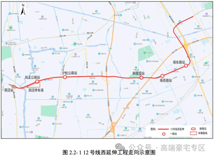 交通方面,该地块距离9号线洞泾站,直线距离约400米,距离在建地铁12号线西延伸段,直线距离约600米。地铁12号线西延伸段,是松江继9号线的第二条轨交地铁线,预计2027年年底通车。自驾可从嘉松南路、沈砖公路等主干道到达各处。