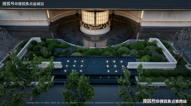 社区景观方面,项目运用室内手法室外化设计构想,将垂直景墙、悬浮观景台与叠水景观立体穿插,形成情随境转的沉浸式体验,自然元素渗透进室内,并与室内空间动态互动。
