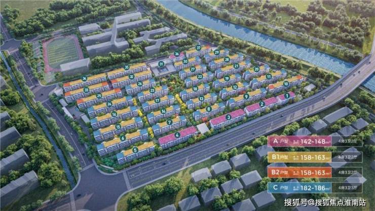 绿化率30%,容积率1.2,规划36栋叠墅,含中心花园、健康跑道及“四水归堂”园林设计。23