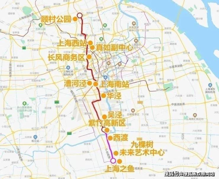 终点望园路站离奉贤著名风景区、上海第3大人工湖“上海之鱼”直线距离1公里都不到,此处还能与5号线、在建南枫线实现交汇换乘,是未来的上海南部大型枢纽。