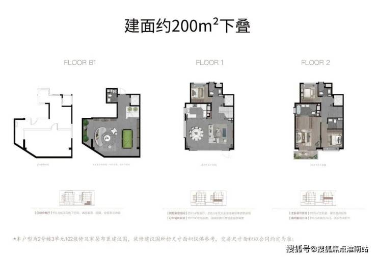 在所有叠墅户型中,下叠往往是更具“墅感”的,我们以主推的建面约200㎡下叠产品为例,来解析一下这个产品:
