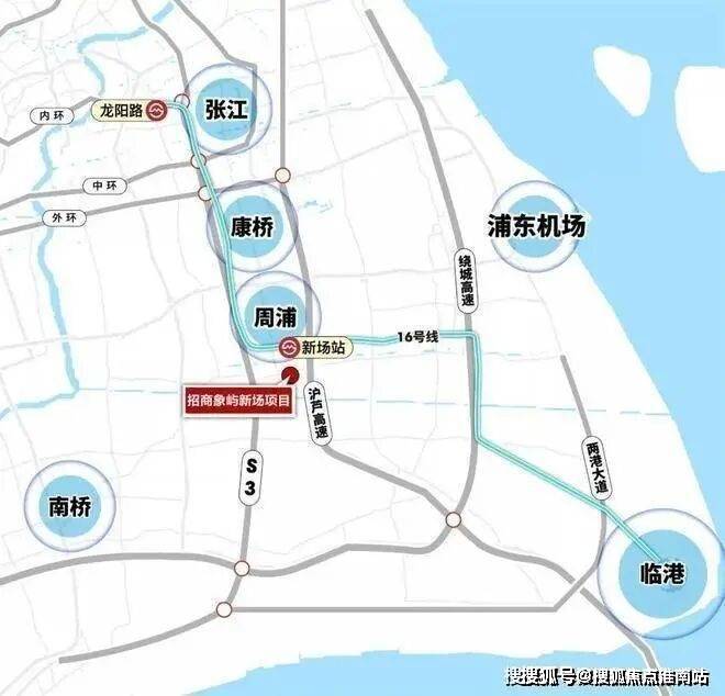 在交通上,项目距离16号线新场站步行约2.3公里,显然依赖地铁出行的话,可能不太现实;但项目临近沪芦高速出入口、申江南路等主干道,自驾的话,可快速直达张江、唐镇、周康等板块!