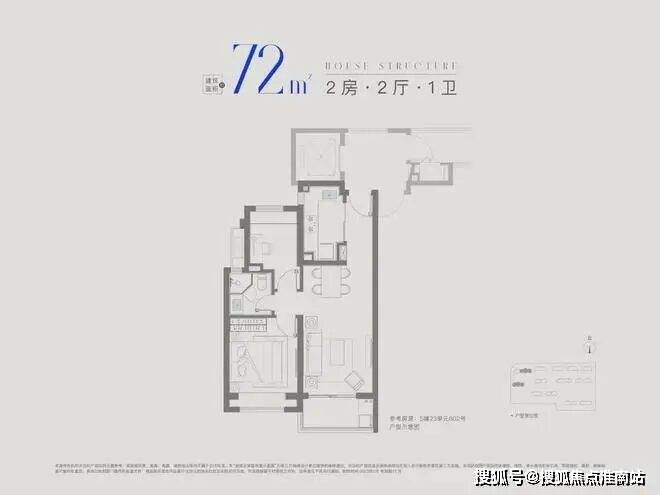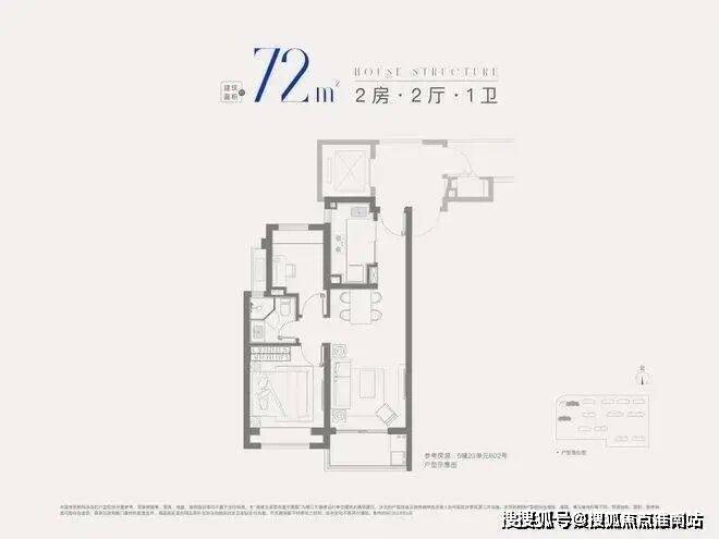 建面约72㎡2房1卫,做到双开间朝南+全卧室带飘窗,总价低至2字头,是刚需上车2房的优质之选。