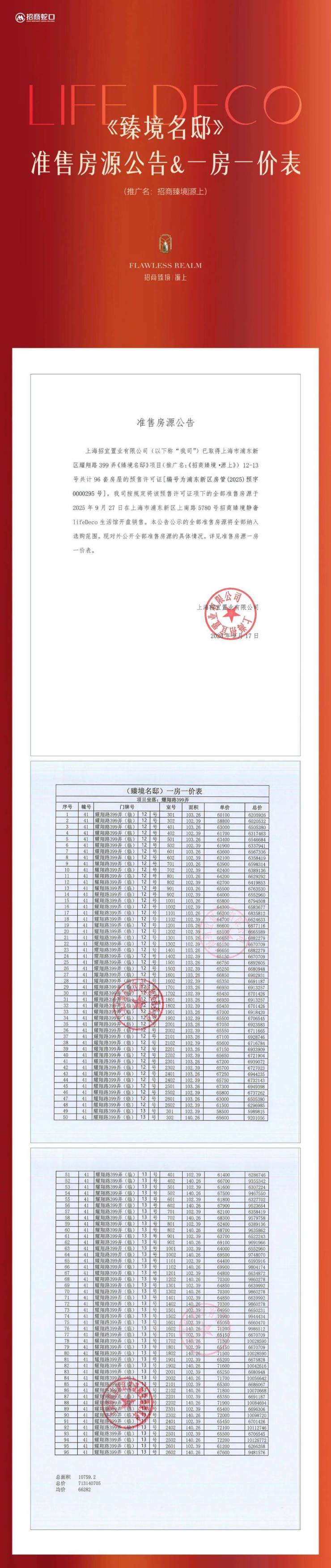 好消息,浦东三林总价581万起三阳台王炸产品【招商臻境】加推建面约95-150㎡公寓&叠墅!均价69657元/㎡!一房一价首发!