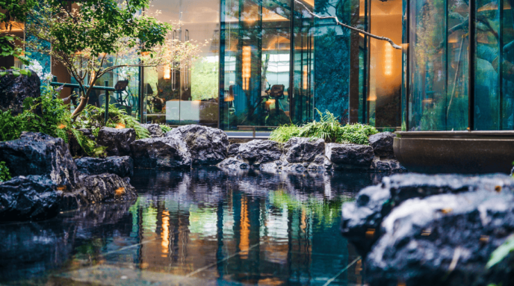 二是在社区内对于水景的打造,要知道就算是很多千万级以上的项目都难以在社区内规划水景景观,原因很简单——水景打造可以算是园林景观设计中造价高的!但在招商臻境的社区规划内,看到了多处极其充满质感和现代艺术感的水景景观!这,是壕!