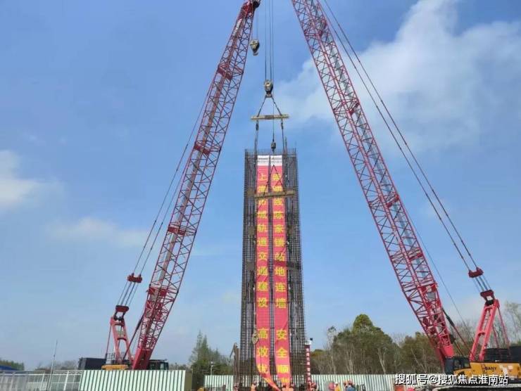 陈家镇站首幅地下连续墙钢筋笼顺利起吊、入槽。
