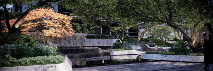 内外双公园 的园林景观 ,外有杨浦公园,内有奢石名木,布局 “五轴七纬” 的私享花园,每一处景观都经过精心雕琢,营造出一个既私密又开放的绿色空间。