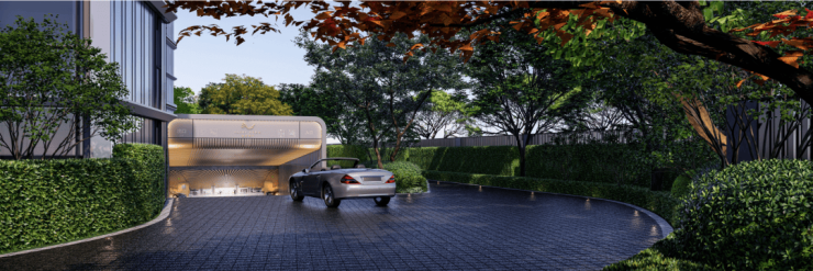 约3.8m-4.5m的地下车库层高, 下挖的成本更高,但是给业主营造更大气的归家体验。