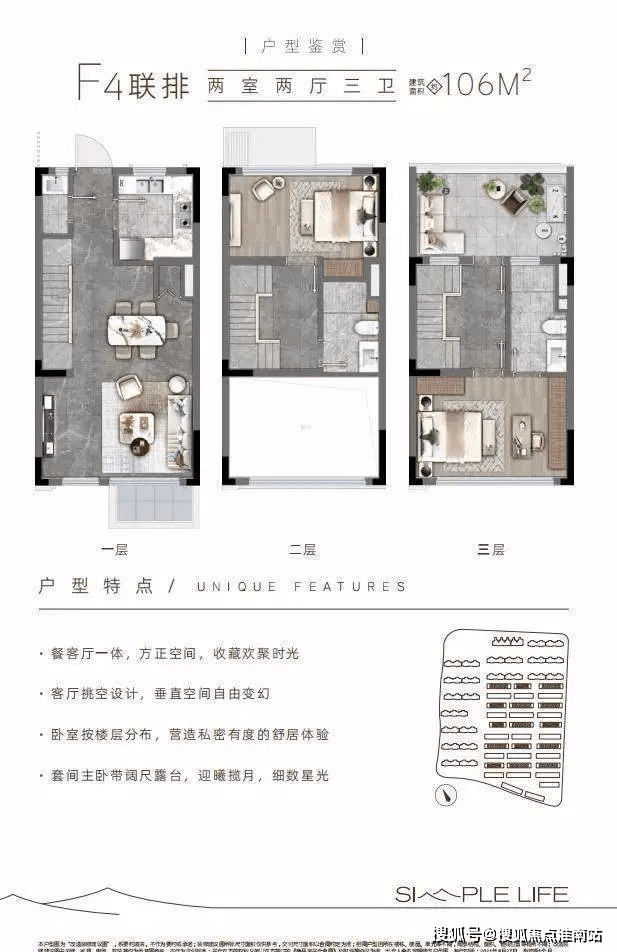 本次将主推建面约106㎡的联排别墅。
