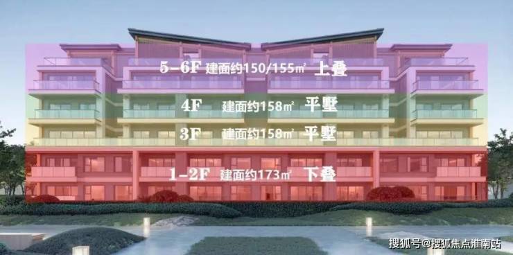 6层组合墅:中轴区采用经典双叠层+平层结构,外围区创新设置三重立体单元