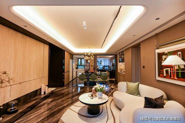 项目南向开间大,同时室内布局又规整,造就了一个方正大气的客餐厅阳台一体化空间,视野几无遮挡,气度非凡。②约5.4米超大面宽的客餐厅,提升空间感