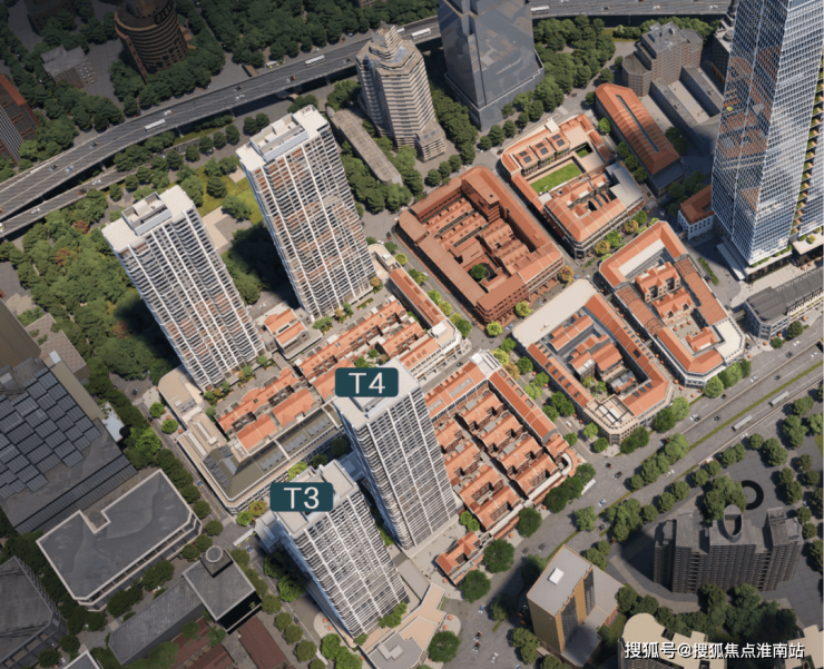 金陵华庭体量高达约67万方,远不止四栋塔尖住宅,而是形成了商住办综合性的整体开发,是一个超级城市综合体。