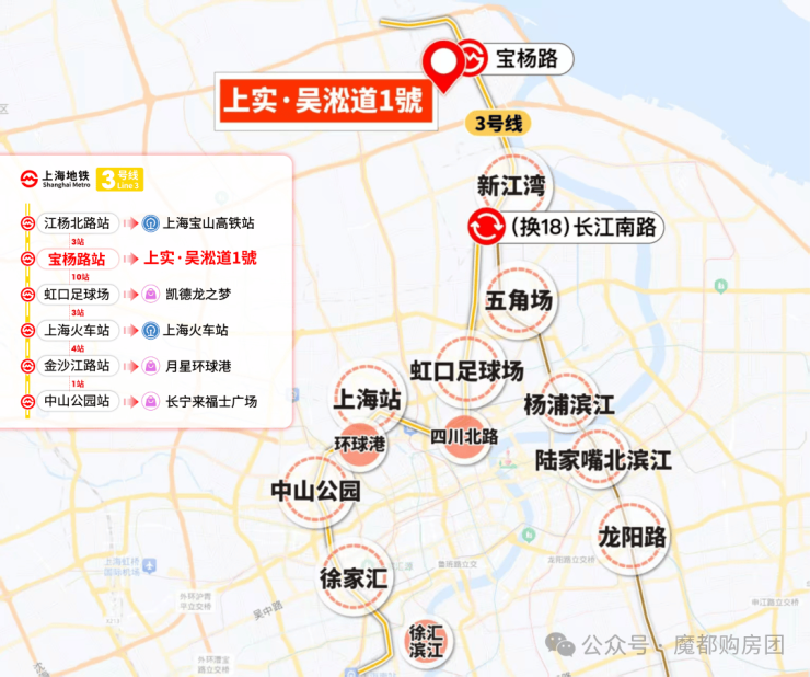 3号线通达虹口足球场、中山公园、徐家汇等多个热门商圈。