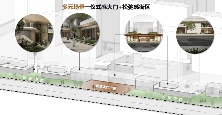 ▲仪式感大门+松弛感街区的多元场景