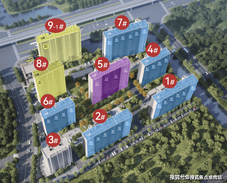 非人车分流,部分楼栋首层有架空,东面有河道经过,南面规划了一处幼儿园用地。