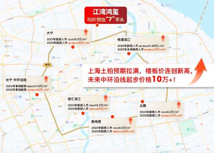 尤其是中环沿线,续徐汇滨江之后,长宁天山,静安大宁,杨浦滨江,浦东北蔡、新杨思等区域相续迎来单价“地王”,未来售价不断加码。