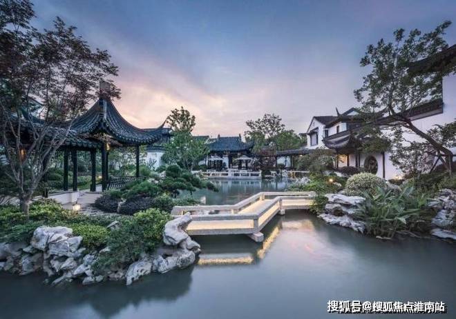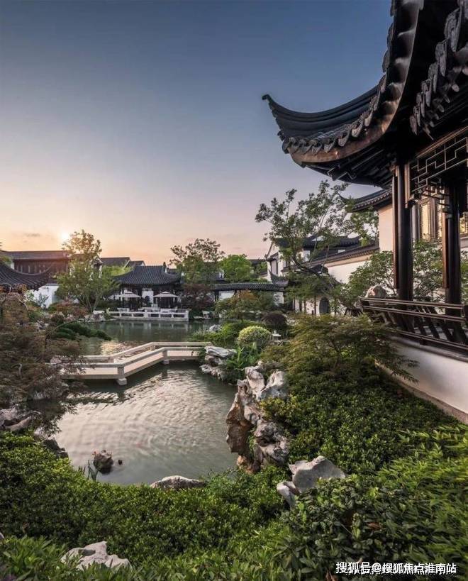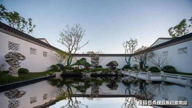 园内设置七处景观组团,以中国各大古典名园为借鉴,并融入宋代的雅致生活韵味。宋式园林更强调“精而造疏,简而意足”,擅以意山水画为蓝本、以画设景,诗词为主题。步履其中,移步换景,步步生趣。花园组团规模扩大,户户有景,各自成趣,或临廊听雨,或观亭赏风,居住更为诗意。