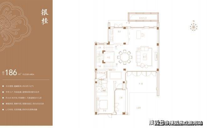 房屋实际可用面积要比户型图标注面积大一些,以“丹桂”户型为例,户型图标注的建筑面积为185m²,但是层高达到9.9m,未来完全可以搭建二层,搭建后,地上使用面积可以达到约280m²左右。